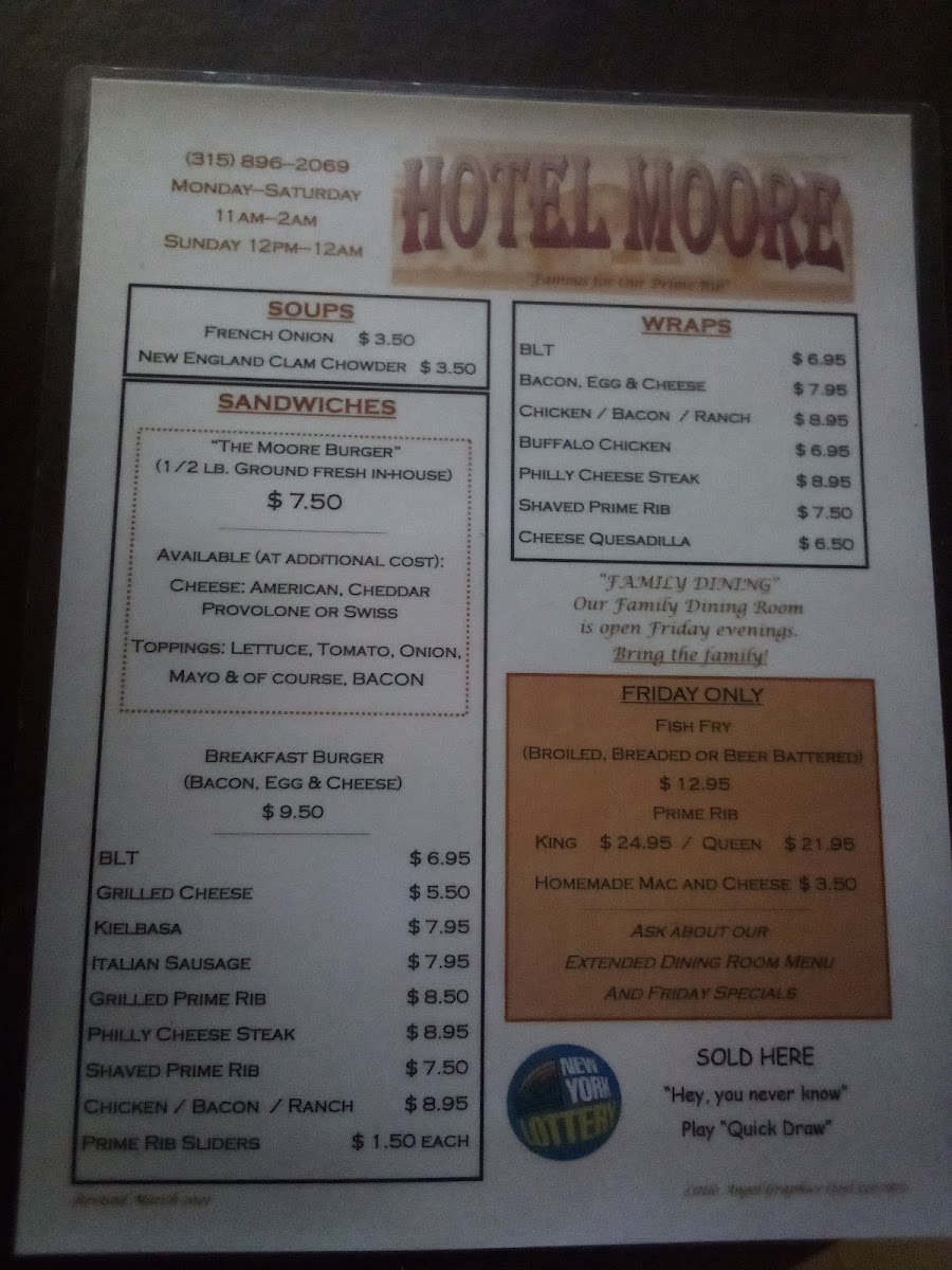 Welcome to Moore's Bar and Grill, a hidden gem located at 113 Mappa Ave in Barneveld, NY. This cozy eatery is renowned for its delicious offerings and inviting atmosphere. The menu features an impressive selection of options, perfect for any palate.